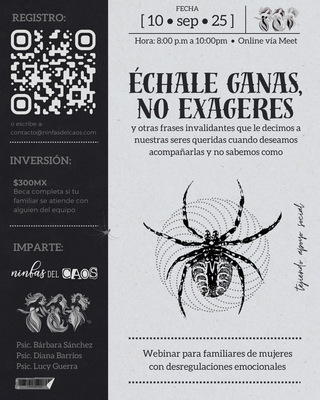 Cinedebate: La Hermanastra FeaÉchale Ganas, No ExageresMi Primera FunaTaller de HabilidadesAmor RadicalMitos y Realidades de las Mujeres AlistasCómo Salir del Achaco